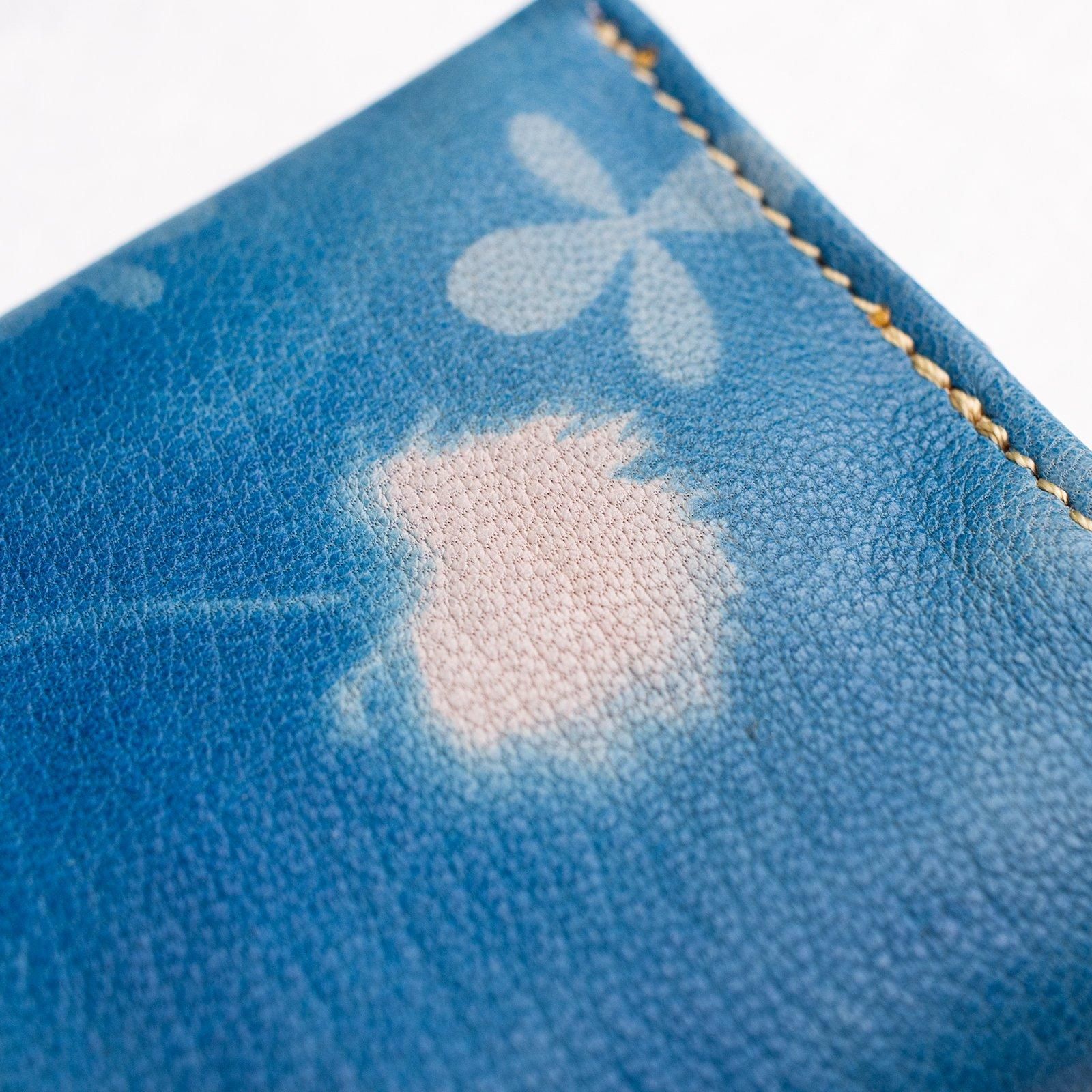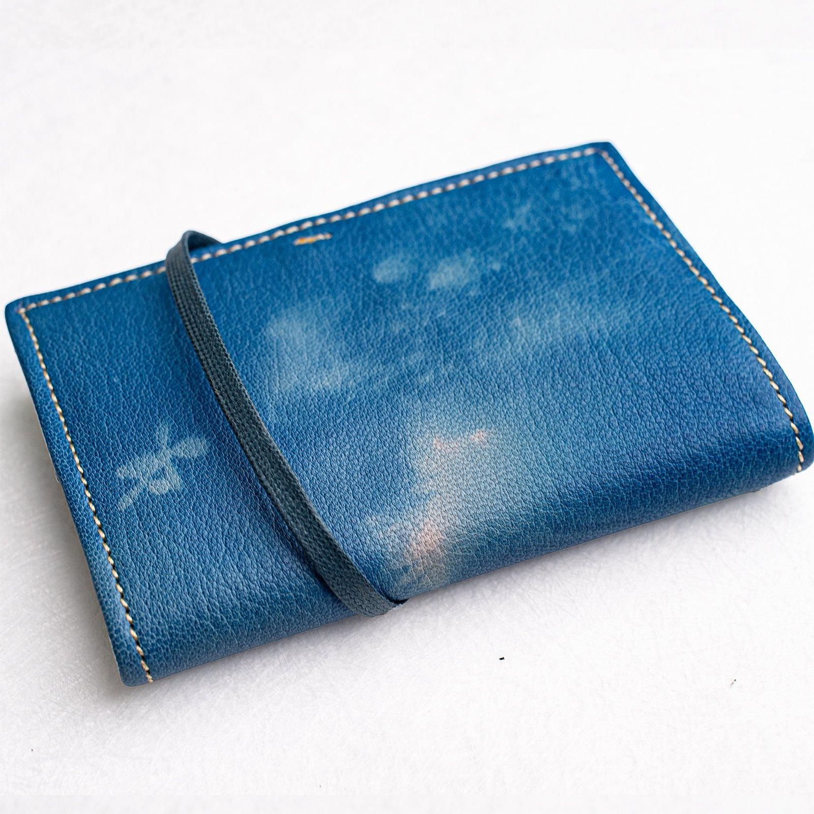 いろいろな植物をサイアノタイプで山羊革に写しました。