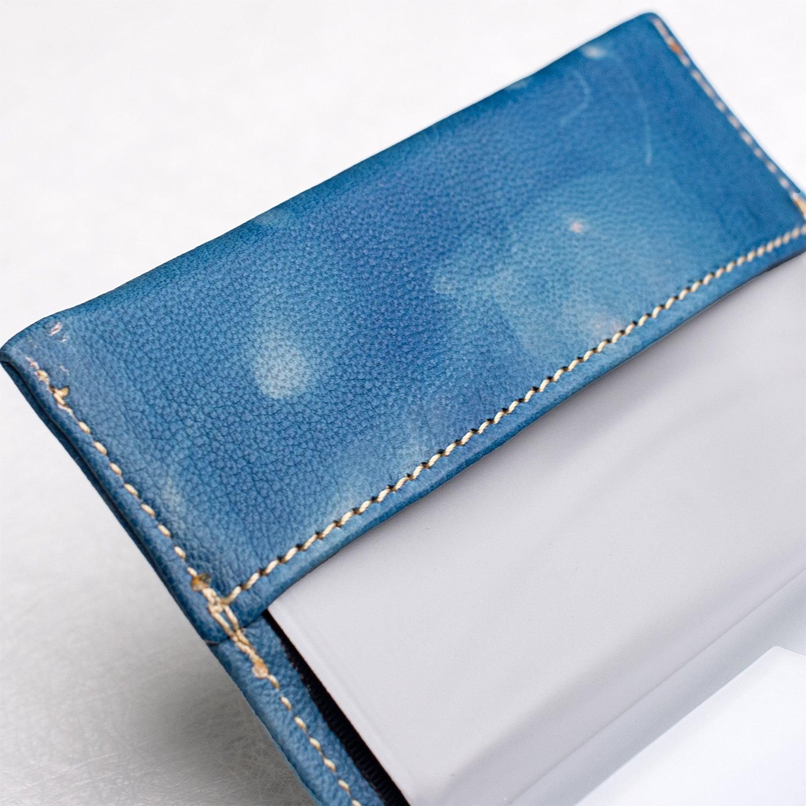 光が通り感光したところは青く、通りにくいところは革の色に近いになります。